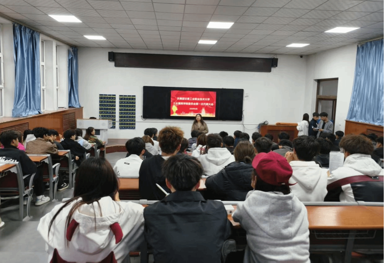 青春聚力启新程,砥砺奋进担使命。为深入学习贯彻习近平新时代中国特色社会主义思想和党的二十大精神,加强学院共青团组织建设,凝聚青年学子奋进力量,2026年4月8日,共青团甘肃工业职业技术大学土木建筑学院委员会第一次代表大会在学校东阶梯教室隆重召开。学院党委副书记左弼文、团委书记马雪丽、各班代表、共青团员、全体团学干部成员齐聚一堂,共赴这场青春盛会,共同擘画土木建筑学院青年工作新篇章。活动伊始,大会严格按照章程及选举工作规定有序进行。...