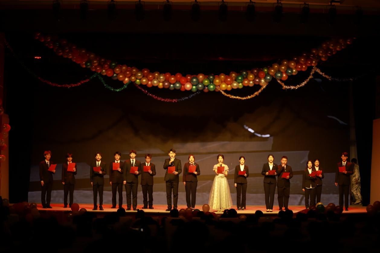 晚会尾声,全体主持人登台致闭幕词,感谢领导的关怀、演职人员的付出与师生的参与。全体演职人员上台合影留念,在温馨的氛围中,本次活动圆满落幕。