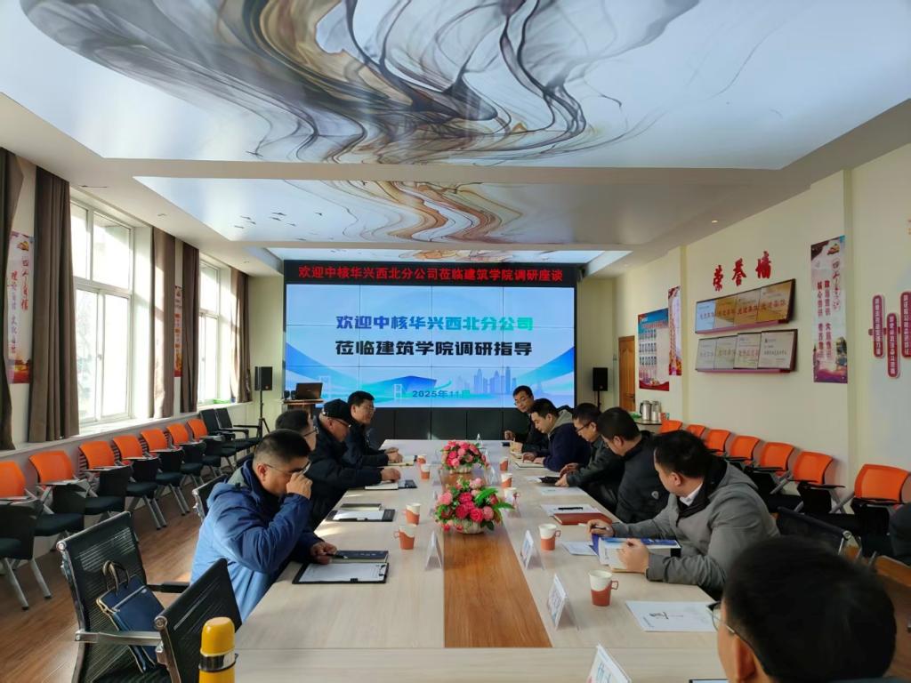 2025年11月19日,中国核工业华兴建设有限公司西北分公司副总经理潘汉鸿一行莅临我校开展校企合作交流座谈。学校党委常委、副校长周晓明出席,建筑学院相关负责人参加。
