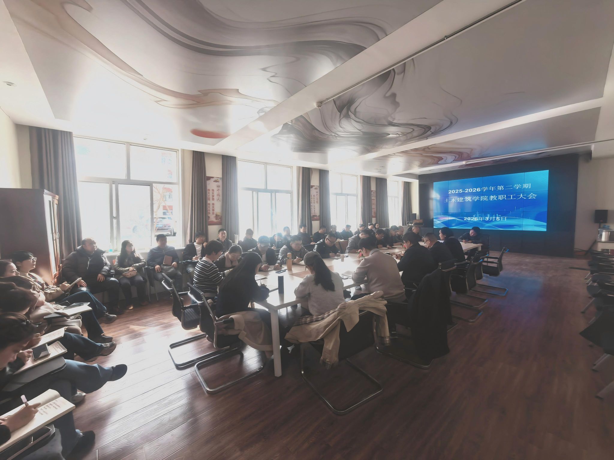 3月5日,土木建筑学院召开开学全体教职工大会,会议对学院各方面进行安排部署。学院全体教师参会,为新学期各项工作开好局、起好步明确方向、凝聚力量。