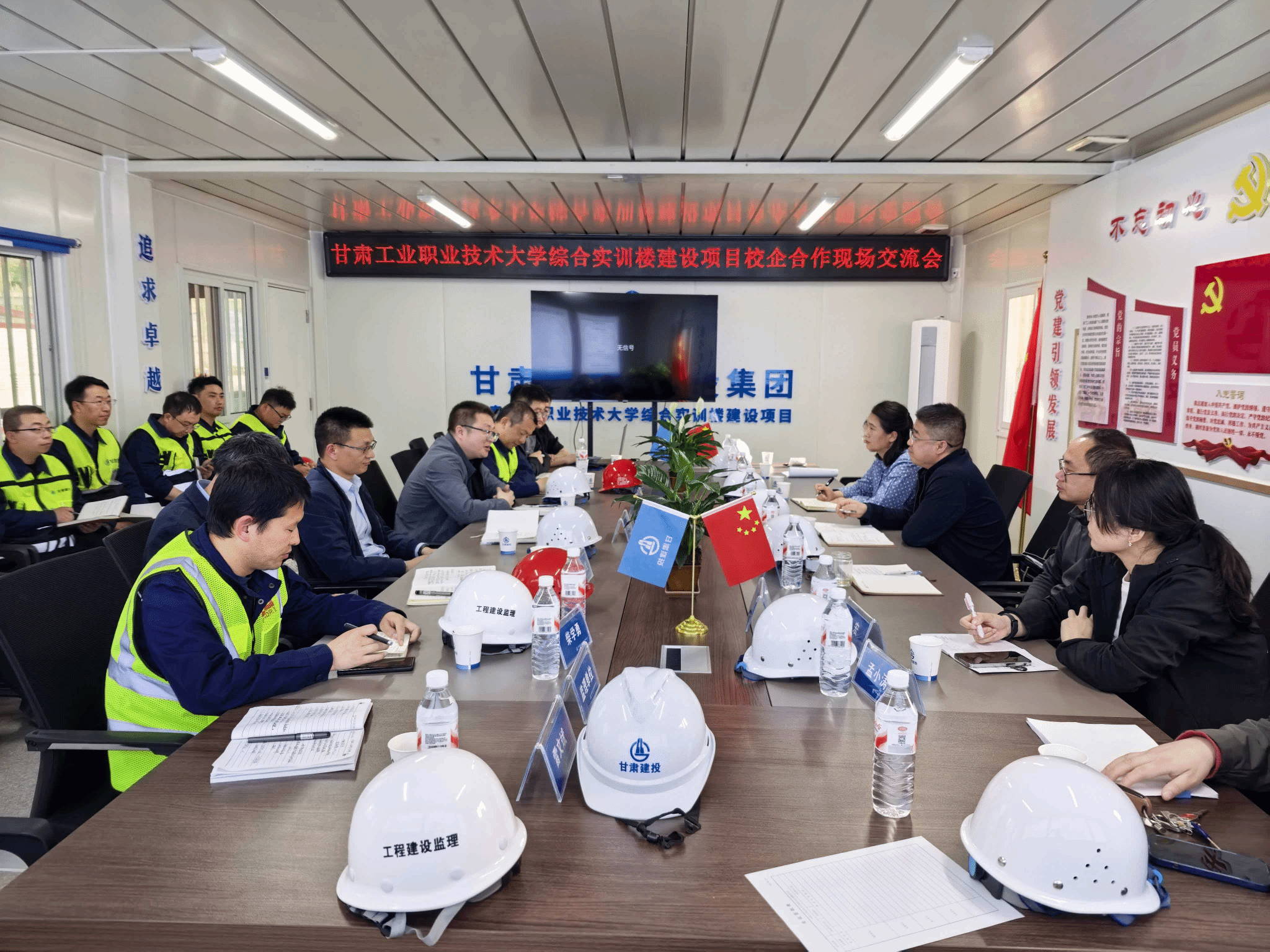 4月10日,在学校基建处统筹组织下,土木建筑学院依托学校综合实训楼在建项目,成功举办校企合作现场交流会。基建处副处长王鑫、产教融合办公室副主任高小龙、土木建筑学院院长闫积刚、副院长邵转吉及专业教师代表,甘肃省第八建设集团有限责任公司副总经理白宇峰、李金粮及相关技术人员等参会。