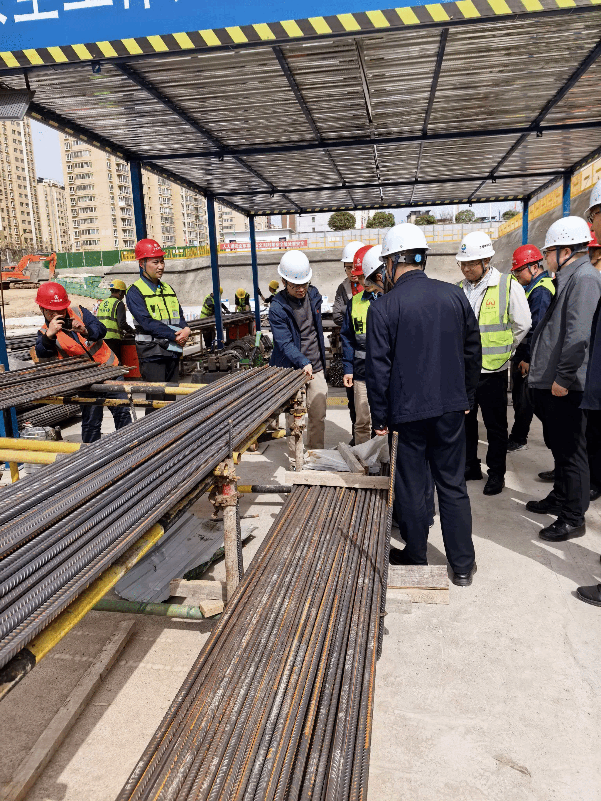 与会人员实地查看综合实训楼项目建设现场,详细了解施工进度、技术应用及现场管理情况,围绕建筑类专业实践教学、人才培养模式创新、实训资源共建共享等内容进行深入交流。双方一致认为,应充分发挥在建工程项目的实景教学优势,推动课堂教学与工程实践深度融合。