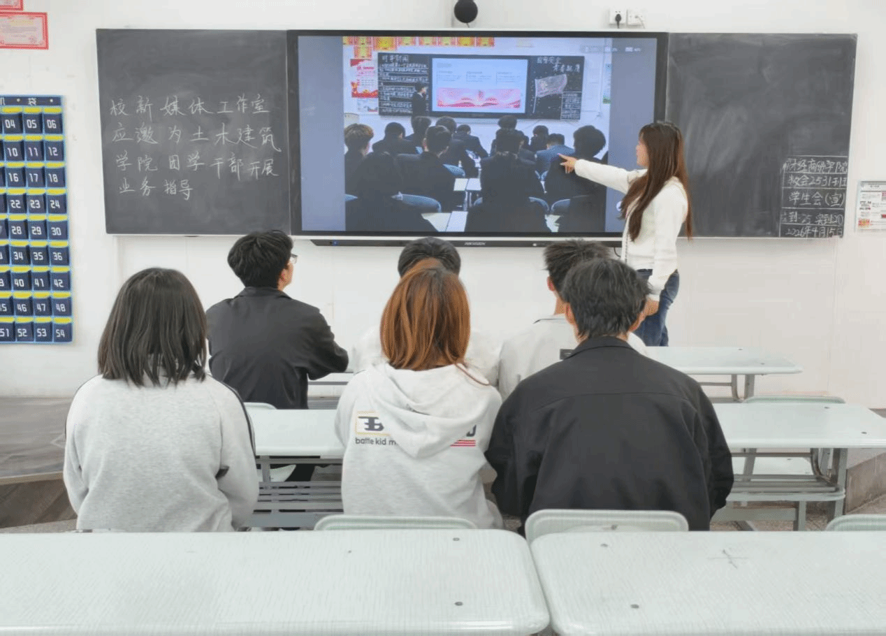 为深入贯彻落实立德树人根本任务,切实提升二级学院团学骨干的宣传素养与业务实操能力,进一步加强校院两级学生宣传队伍的协同联动,4月14日至17日,学校新媒体工作室骨干成员应邀走进土木建筑学院,为学院团学负责宣传业务的学生干部进行团学宣传业务指导。