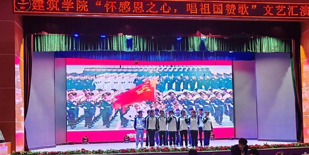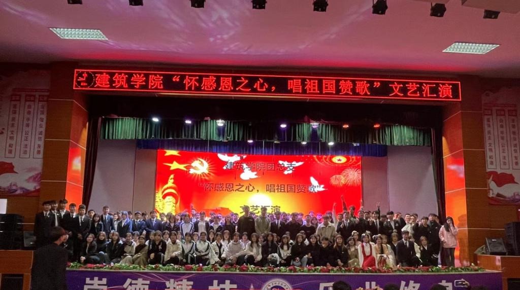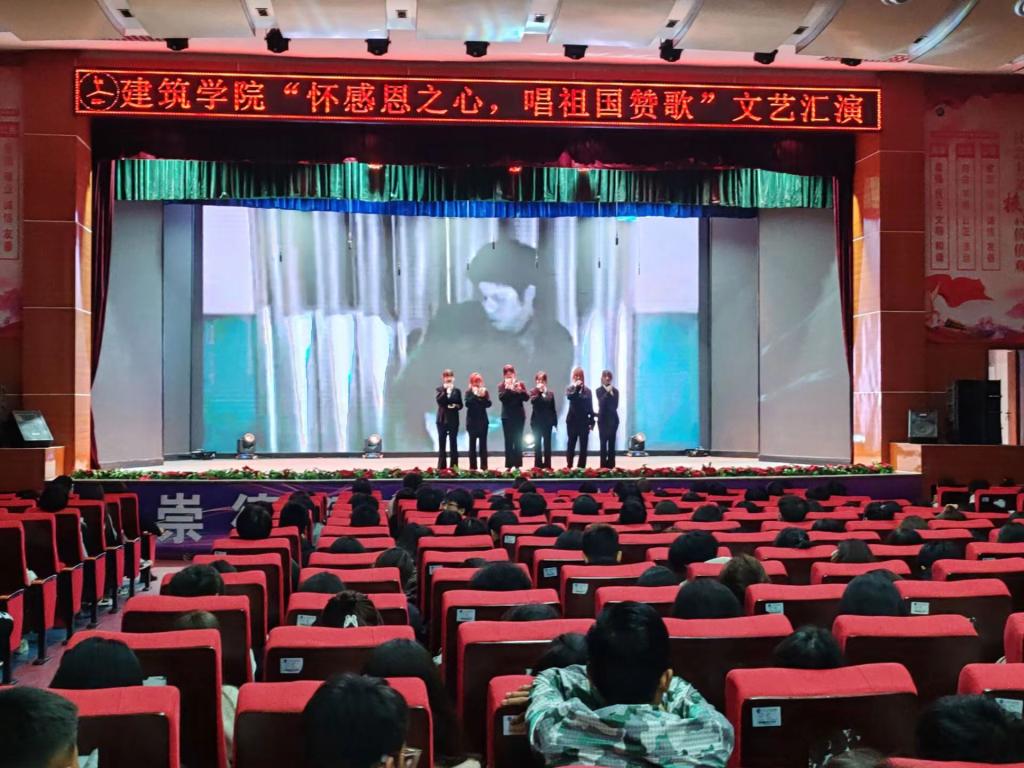 为弘扬爱国主义精神,激发学生的社会责任感和历史使命感,建筑学院于10月23日晚协同各二级学院学生在大学生活动中心举办了“怀感恩之心,唱祖国赞歌”文艺汇演。