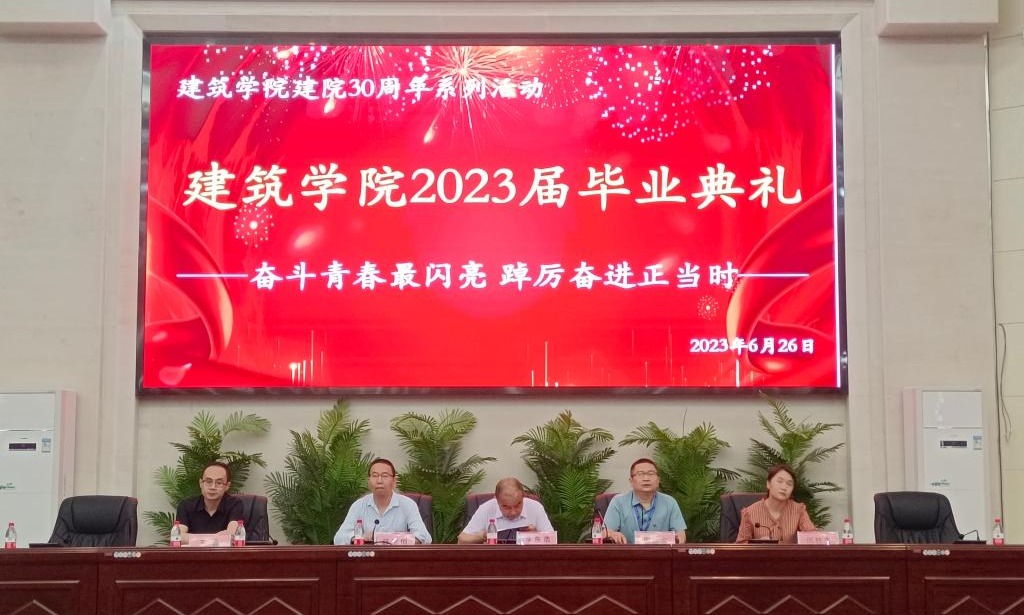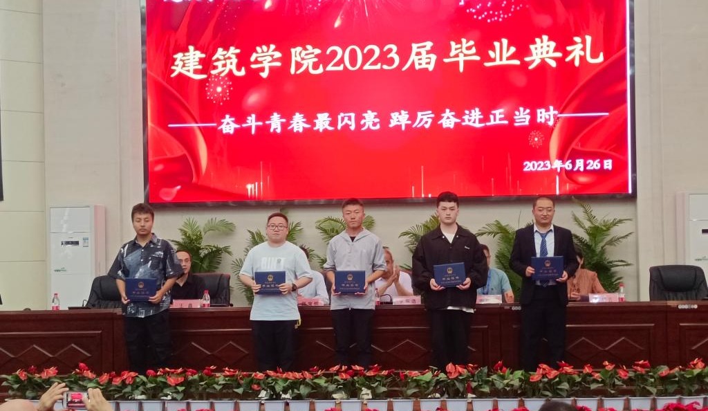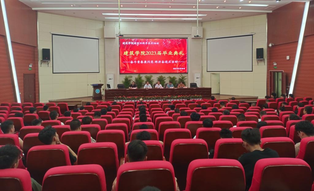 奋斗青春最闪亮,踔厉奋进正当时。6月26日,建筑学院2023届学生毕业典礼在图书馆报告厅举行。学工处处长李东浩、建筑学院党支部书记、院长谢延友、建筑学院党支部副书记薛宝恒、建筑学院党支部专职组织员王鑫出席典礼,大会由建筑学院副院长邵转吉主持。学院辅导员、教师及2023届毕业生等200余人参加。