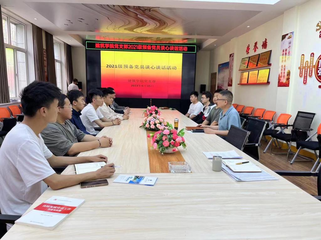 2023年6月15日,建筑学院党支部为做好发展党员工作,切实提高新党员的质量,确保新党员的绝对纯洁,绝对可靠,绝对忠诚,提高新党员的思想认识,政治站位及素养。在党员活动室开展了“建筑学院2021级预备党员谈心谈话活动”,建筑学院党支部书记谢延友主持,专职组织员王鑫出席此次活动。