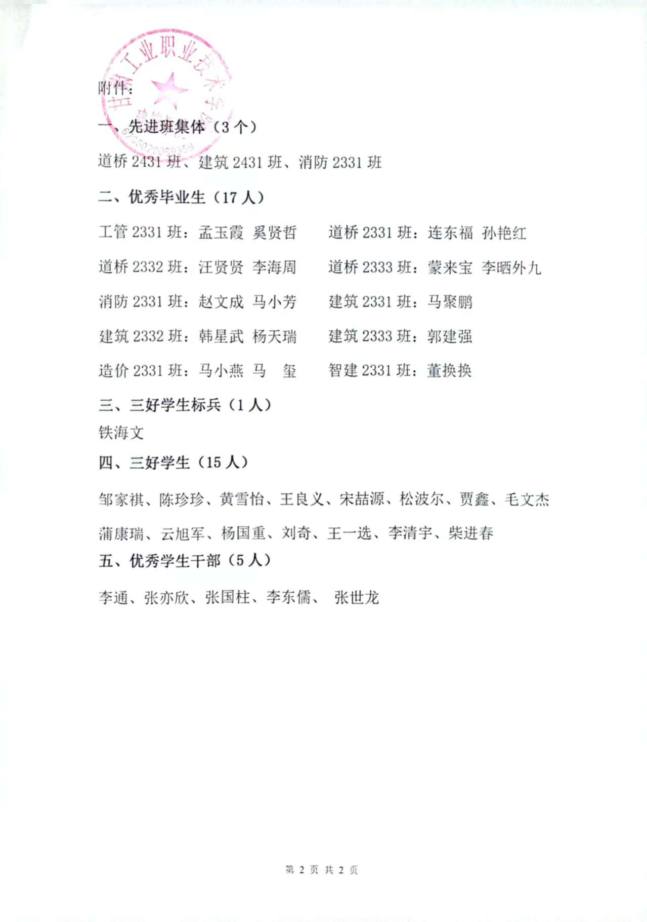 建筑学院2024-2025学年度学生先进个人、先进班集体评选公示