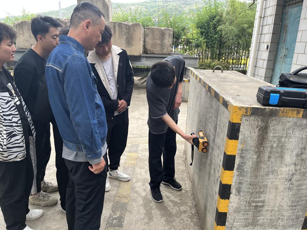 建筑学院教师和学生一行在天水市交通建设工程质量检测中心有限公司董事长梁雪利和专业技术人员的陪同下,参观了企业的试验室,并在专业试验检测人员的指导下分组开展了钢筋的拉伸试验、EDTA滴定试验、水泥胶砂强度试验、回弹法检测混凝土强度试验、碳化深度检测、钢筋保护层厚度检测、马歇尔试件击实试验、桩基完整性检测、落锤式弯沉仪检测弯沉、激光平整度试验、沥青针入度、延度、软化点的试验的等多个试验项目的实践学习。