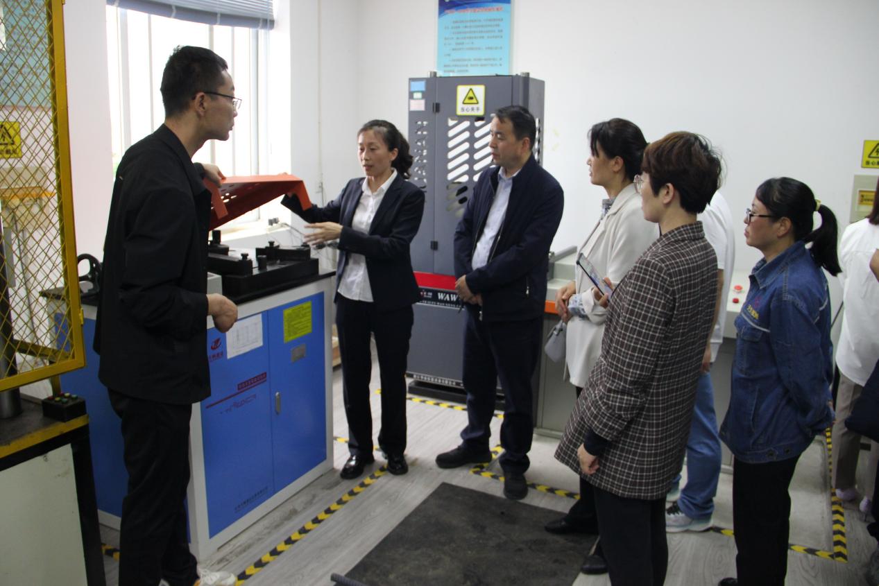 建筑学院教师和学生一行在天水市交通建设工程质量检测中心有限公司董事长梁雪利和专业技术人员的陪同下,参观了企业的试验室,并在专业试验检测人员的指导下分组开展了钢筋的拉伸试验、EDTA滴定试验、水泥胶砂强度试验、回弹法检测混凝土强度试验、碳化深度检测、钢筋保护层厚度检测、马歇尔试件击实试验、桩基完整性检测、落锤式弯沉仪检测弯沉、激光平整度试验、沥青针入度、延度、软化点的试验的等多个试验项目的实践学习。