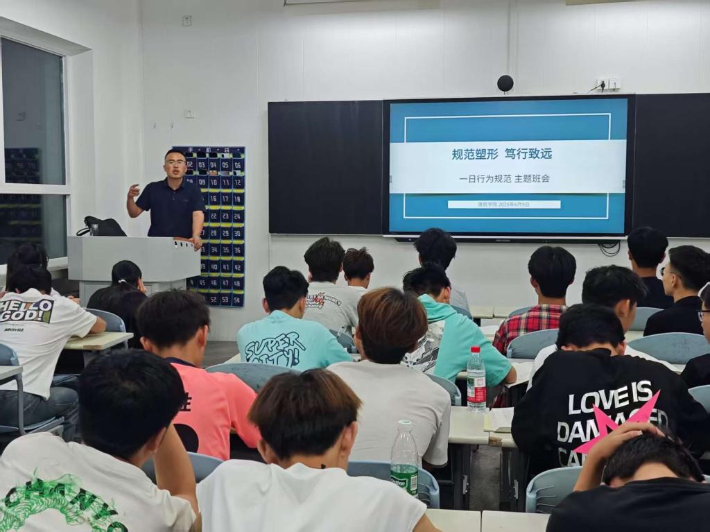 此次“一日行为规范”主题班会的开展,是我校深化立德树人、加强学生日常行为管理的重要举措。它不仅强化了同学们的规则意识和自律精神,更在校园内进一步弘扬了遵规守纪、明礼修身的正能量。建筑学院将持续引导学生将《规范》要求“内化于心,外化于行”,让文明行为成为工院学子的鲜明标识,为培养德智体美劳全面发展的时代新人奠定坚实基础。