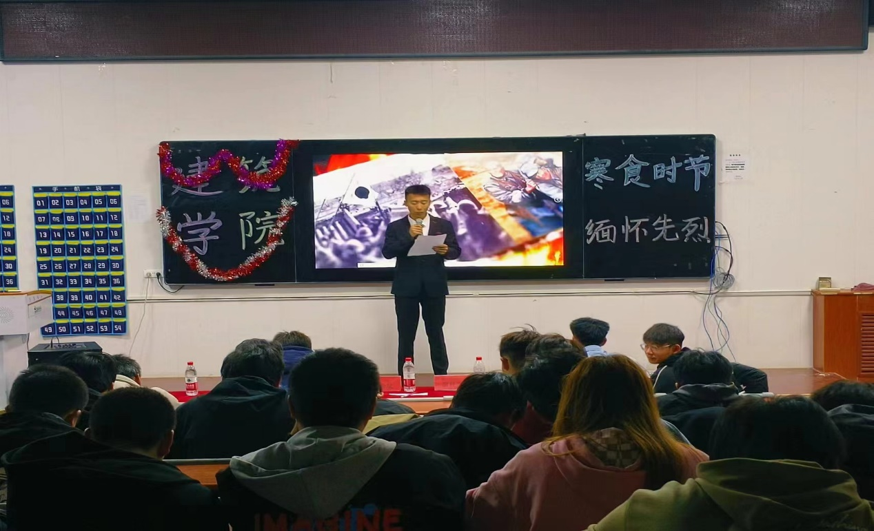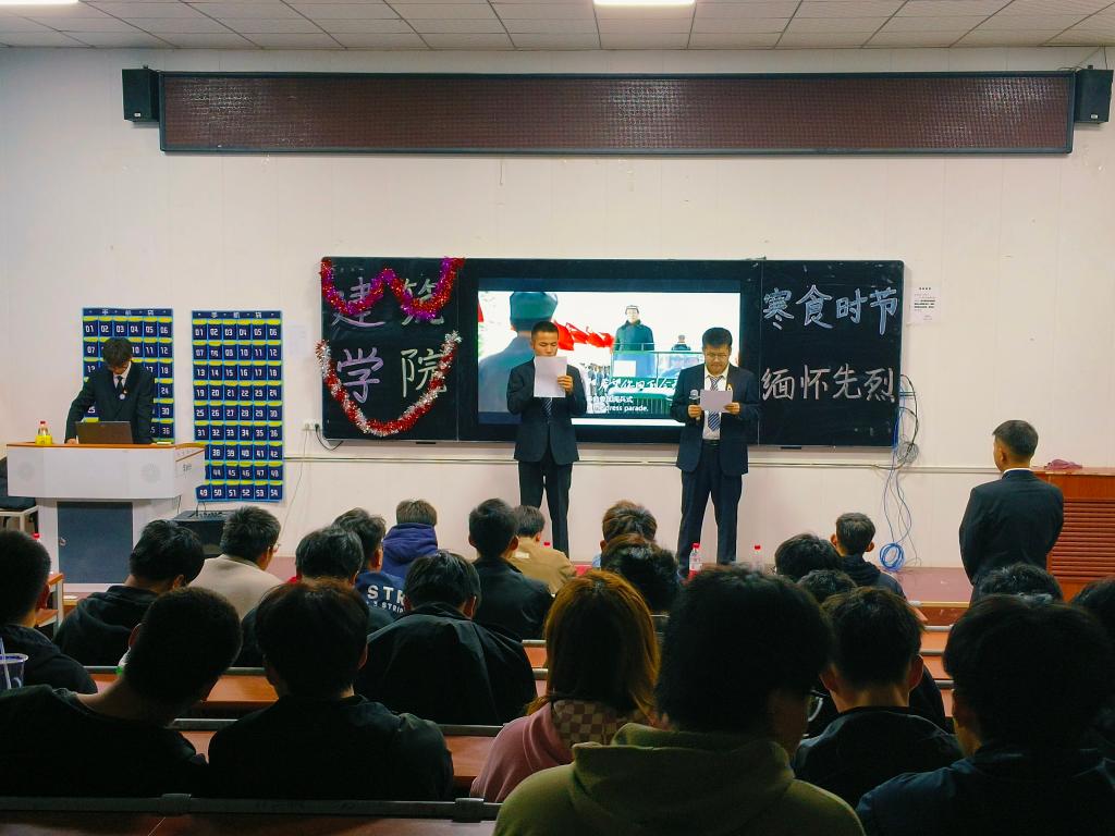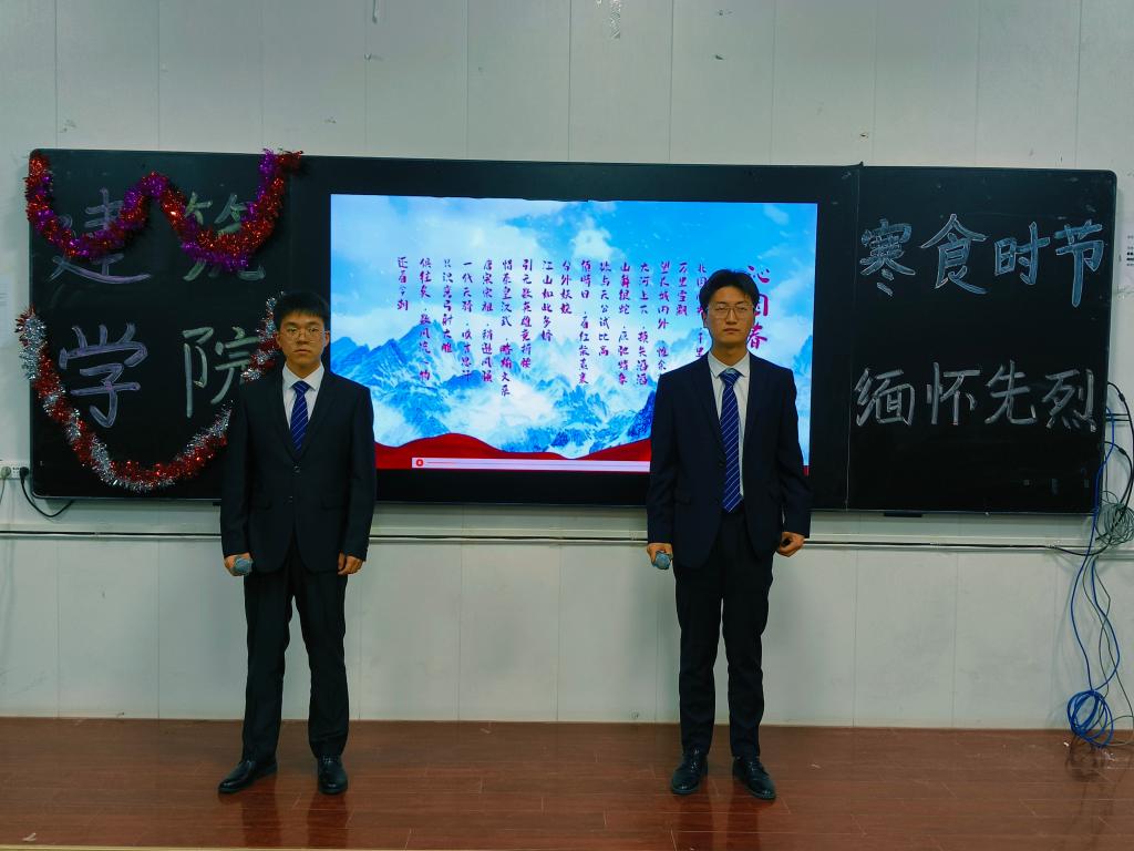 为缅怀革命先烈,弘扬中国优秀传统文化,陶冶学生的情操,营造朝气蓬勃、积极向上的校园文化氛围, 让学生深入了解先烈的事迹和精神,传承红色基因,增强学生对国家和民族的认同感与自豪感。在清明节到来之际,建筑学院于4月2日晚举办“寒衣时节,缅怀先烈”诗词朗诵比赛。