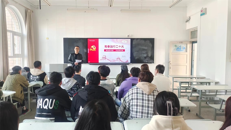 各班围绕党的二十大精神,从爱国、团结、奋斗、科学、互助等角度展开班会,以青年视角讲述爱国故事,以青春热血彰显责任担当,以青春模样迎接崭新时代。辅导员从党的二十大取得的重要成果、重点内容等方面阐述了党的二十大胜利召开的历史意义、理论意义、实践意义。深入解读了党的二十大提出的重大思想观点、重要论断、重大举措。
