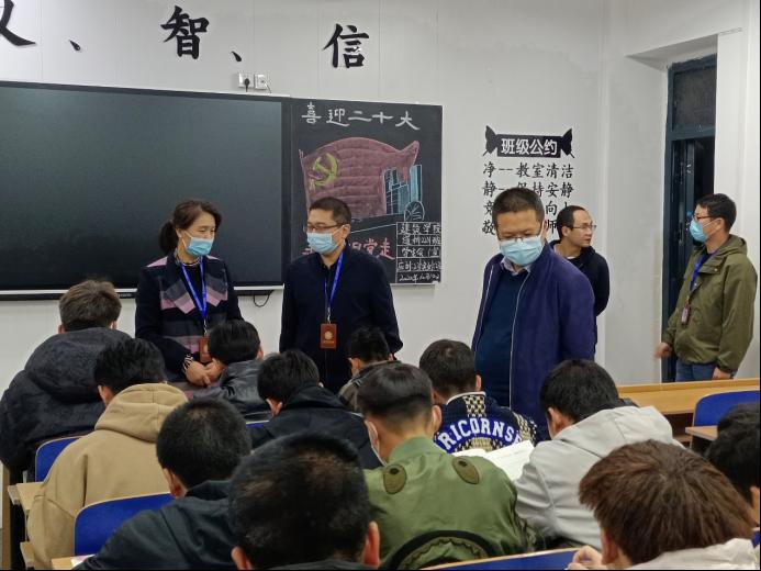 在与学院领导、老师、辅导员交流时,王院长指出,学校历来高度重视学风建设,学院要紧紧围绕立德树人根本任务,用良好学风守护学生行稳致远,为学生成长成才铺路架桥,要不断优化学习环境,强化帮扶举措,帮助新生缩短“适应期”,引导学生树立热爱学习、学会学习、善于学习、终身学习的观念,形成“乐学、好学、会学”的学习风气。