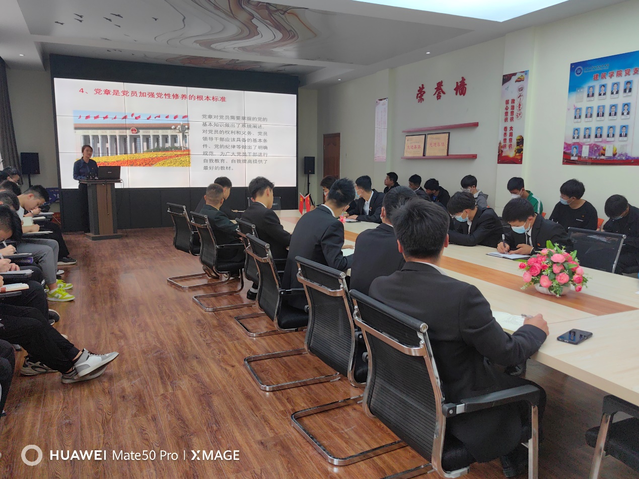 2023年6月2日,建筑学院党支部围绕主题教育“学思想、强党性、重实践、建新功”总要求,结合建筑学院党支部开展“学习贯彻习近平新时代中国特色社会主义思想主题教育”的工作计划 ,不断增强入党积极分子的政治意识、大局意识、核心意识、看齐意识,自觉贯彻《党章》各项规定要求,在党员活动室召开“党课我来讲”系列活动,以“如何理解坚持制度治党依规治党”为主题,由建筑学院党支部纪检委员、副院长邵转吉主讲,建筑学院全体发展对象、入党积极分子40余人参加学习。