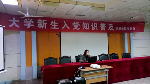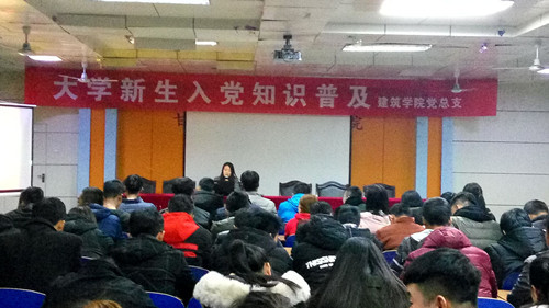 2017年11月30日晚上8:00,建筑学院大学生入党知识普及在旧图书馆三楼报告厅举行,由建筑学院李莉老师主讲,建筑学院学生会干部,团总支干部及各班班委参加此次活动。