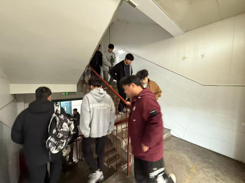 下午2时,演练正式启动。随着模拟地震警报声响起,同学们迅速反应,第一时间双手抱头,躲至书桌下、床沿侧等安全区域,保持身体蜷缩以减少伤害;待“主震”结束后,在团学干部统一指挥下,同学们低姿弯腰、手护头部,按照预定疏散路线快速有序撤离至宿舍楼下空旷集合点。