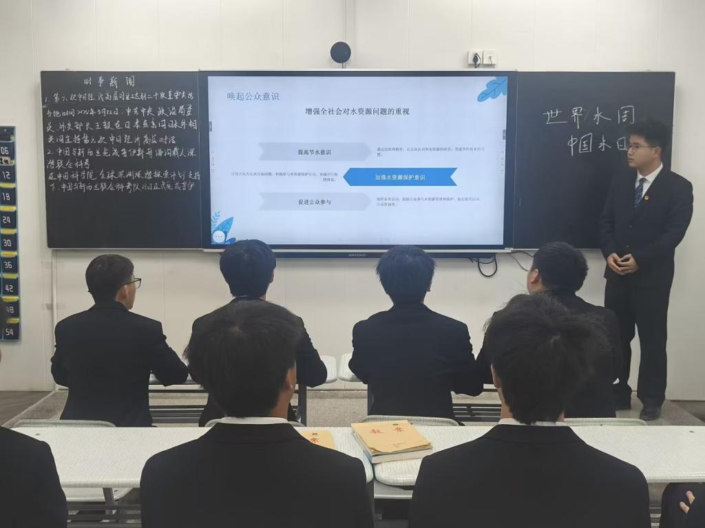 本次团课突破传统形式,采用"团支书主讲+案例研讨"的授课模式。各班团支书化身节水宣讲员,结合全球水资源分布动态图与建筑领域用水实景案例,生动诠释我国"节水优先、空间均衡、系统治理、两手发力"的治水方略。在"节水达人挑战赛"环节,通过设置节水标识连连看、个人用水碳足迹计算等趣味关卡,将节水知识转化为闯关密码,让青年在挑战中掌握节水技能。