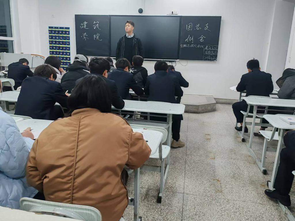会议中,建筑学院团总支副书记李海周带领团总支成员积极行动起来。通过例会的形式向同学们宣传校纪校规的重要性。他们以自我带头作用给干部们强调遵守校规校纪。利用组织内,组织外传播有关校纪校规的知识和案例,例如;多次强调安全隐患、晚自习的出勤率、以及公寓晚就寝等情况。同时也提出严于利己,发挥争做模范带头作用,坚决抵制不作为,乱作为,隐瞒不报,冒充顶替等一系列有关违背校级校规的问题。引导干部们树立正确的行为规范。