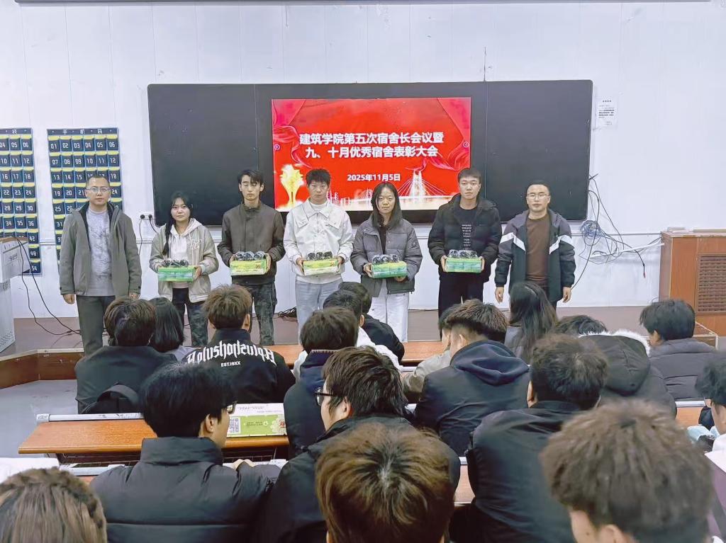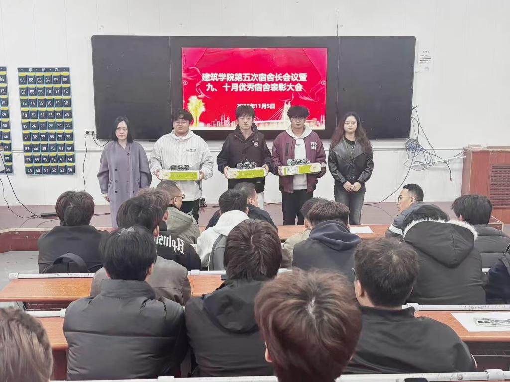 为进一步强化宿舍管理工作,压实宿舍长责任,营造安全、文明、和谐的宿舍环境,11月5日下午,建筑学院在东阶梯教室召开第五次宿舍长会议。学院党总支副书记杨霖、全体辅导员和班主任、及全体宿舍长共100余人参加会议。