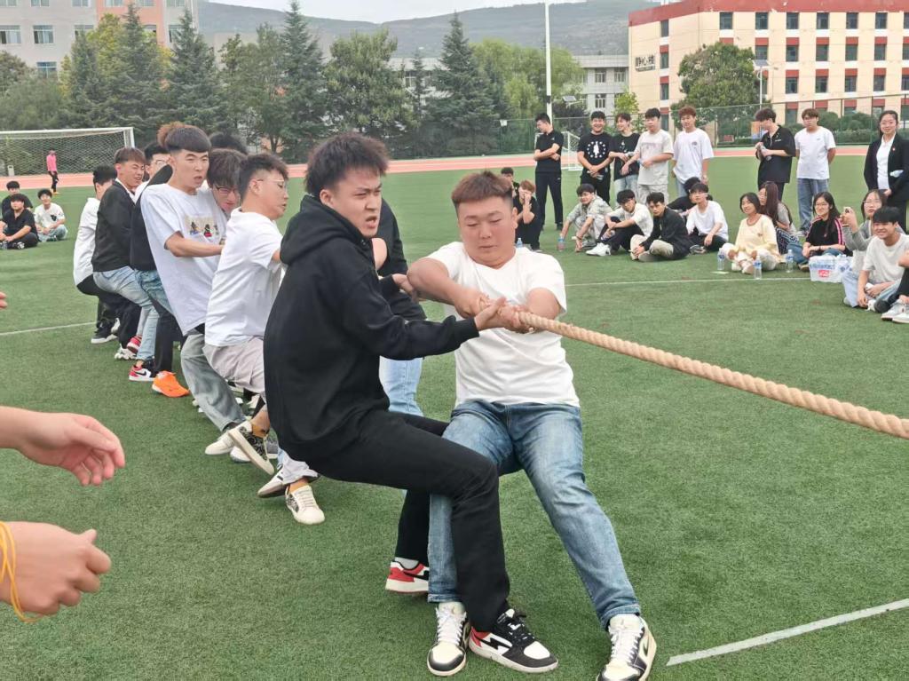 紧接着,各参赛班级集合,班长抽签决定对阵班级。随后,比赛正式打响:6个新生班级以班级为单位,每队15名男生参赛,采用三局两胜赛制,将经分组、交叉赛决出名次。赛场上,队员们紧握绳索、奋力拼搏;场下助威声震耳欲聋,氛围热烈非凡。