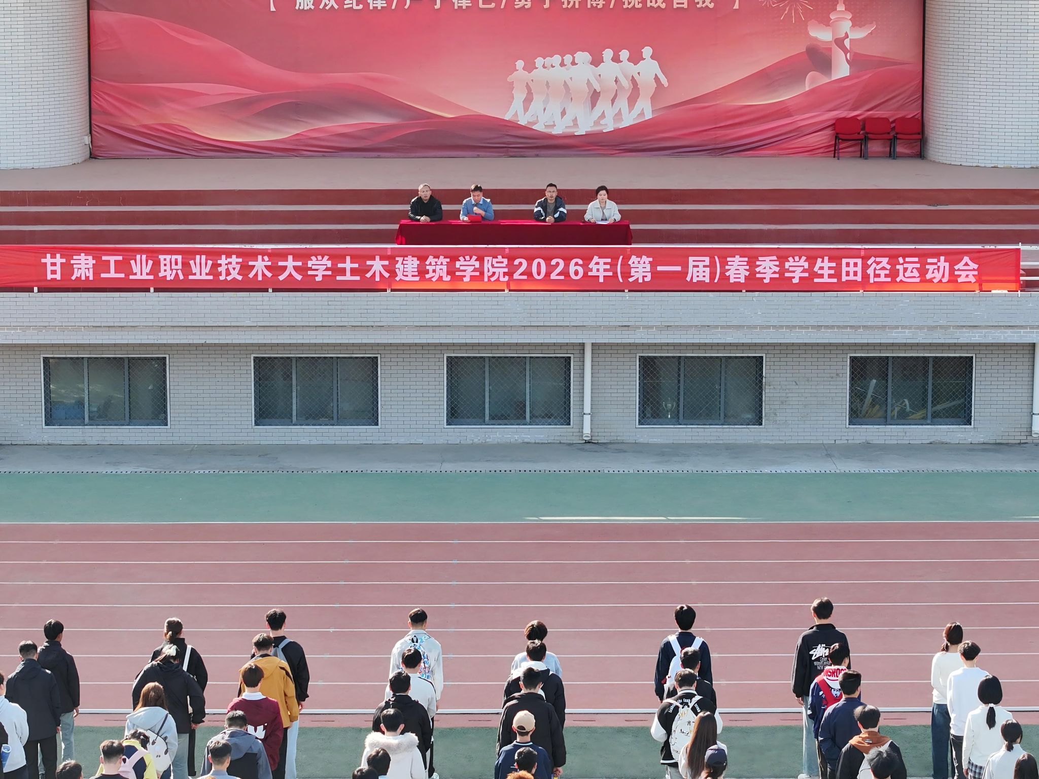 春意盎然,万物竞发。2026年3月25日下午,甘肃工业职业技术大学土木建筑学院第一届学生田径运动会在田径场隆重开幕。学院党委副书记左弼文、教师代表宋志国、宋彦达、马雪丽,以及全体运动员、2025级全体学生齐聚一堂,共同见证这场青春与力量的盛会。